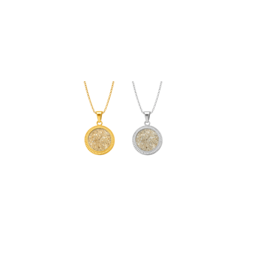 Der hier gezeigte Kettenanhänger Circle ist in Sterling Silber 925 und wahlweise gold- oder silberfärbig beschichtet erhältlich. Der Durchmesser beträgt 12 mm.