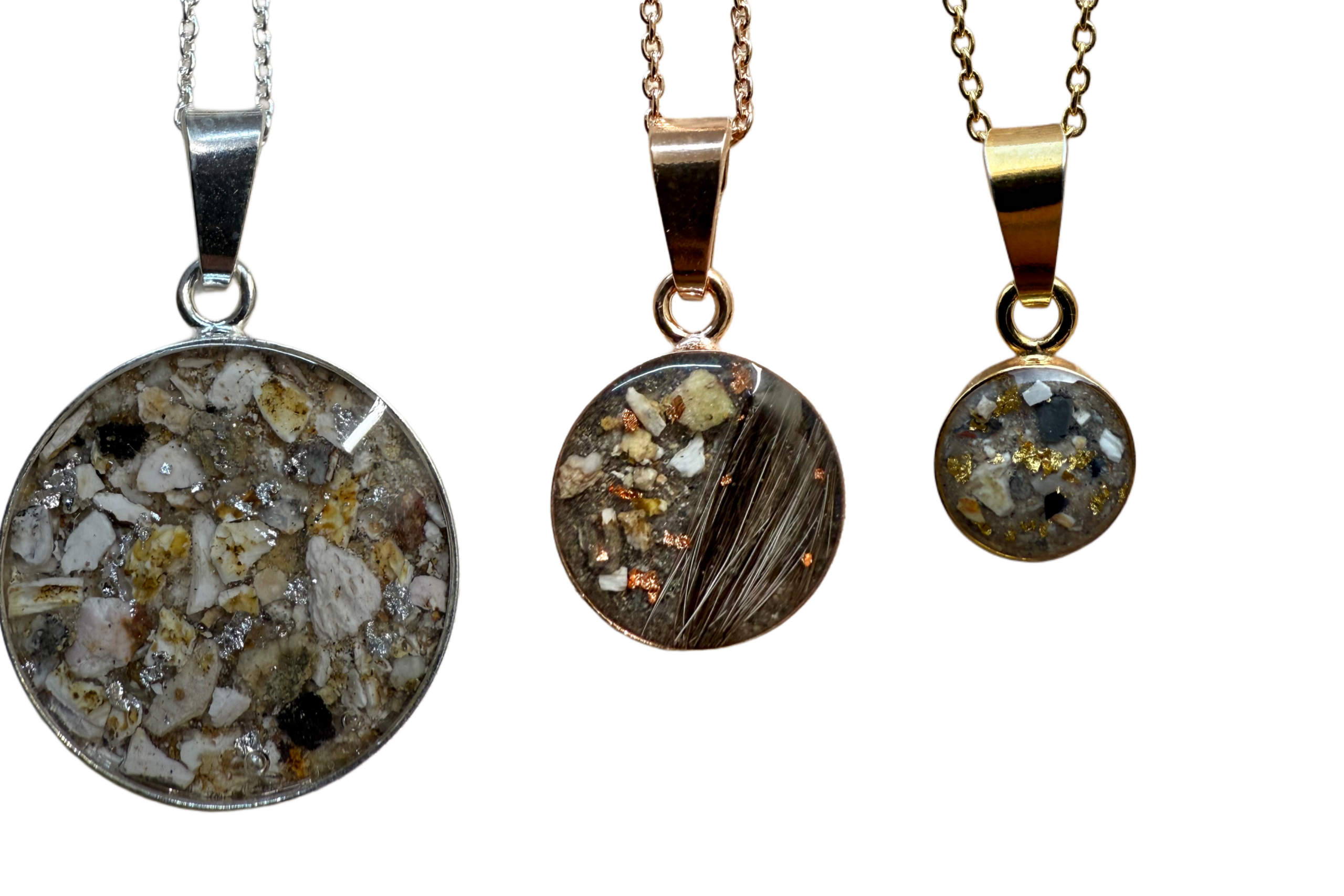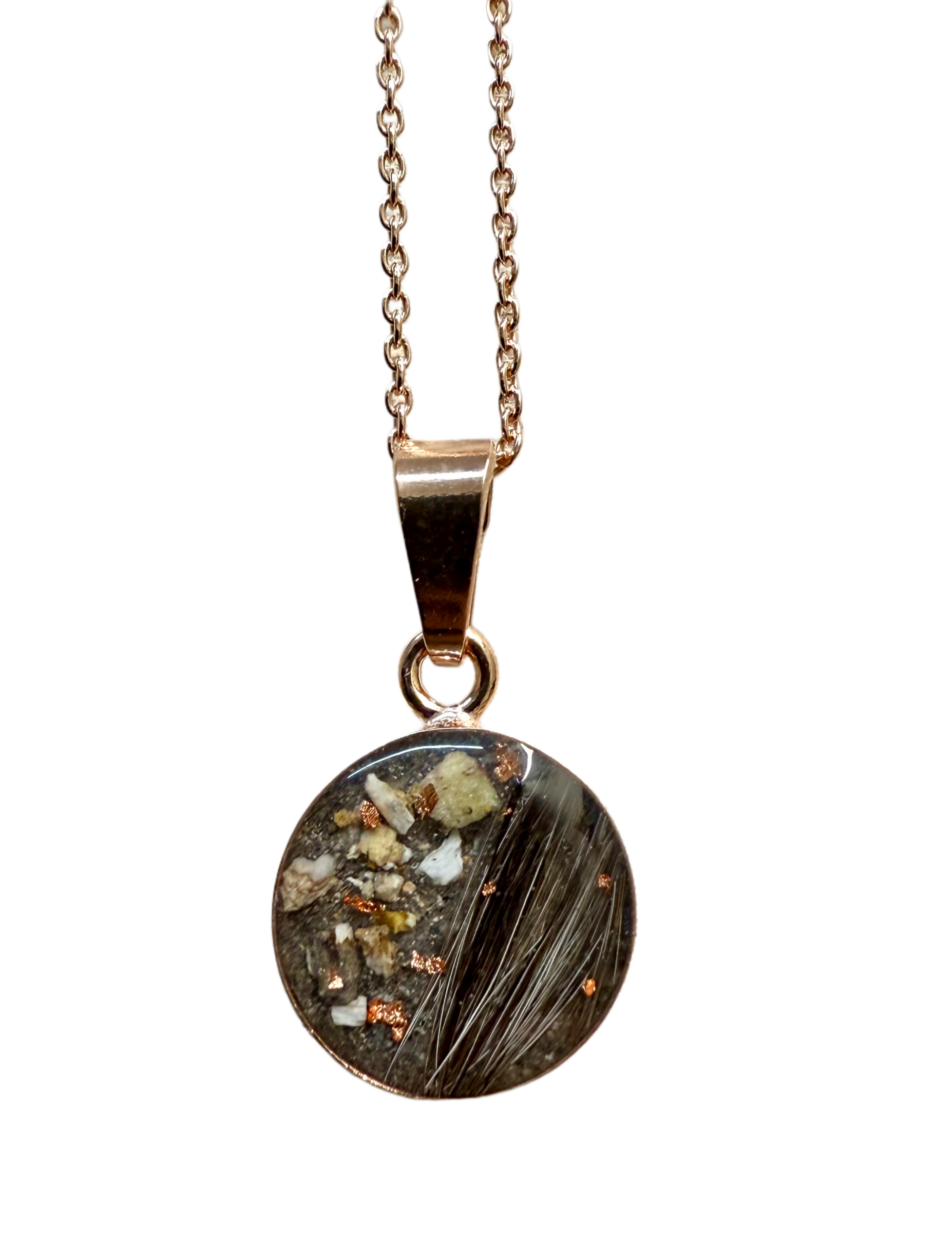 Der Anhänger lässt sich mit Asche oder Haaren personalisieren und wird in liebevoller, regionaler Handarbeit hergestellt. Da kein Stück dem anderen gleicht, ist jedes Stück ein Unikat – hier sehen Sie Symbolbilder.