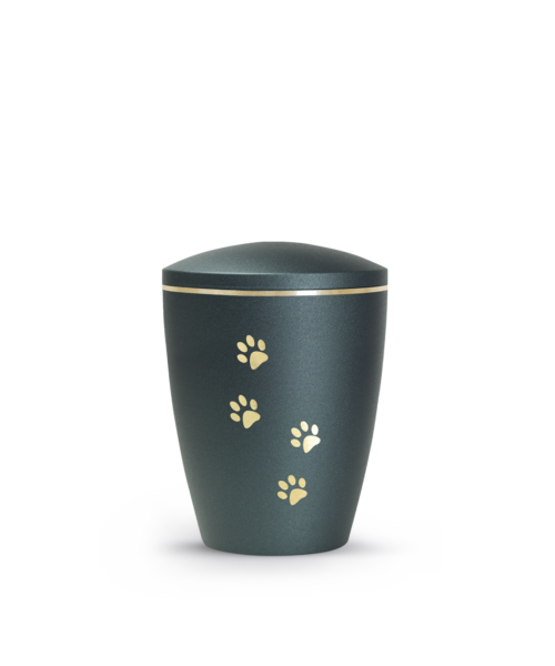 Die Urnen der Edition Elegance zeichnen sich durch ihre schimmernden Oberflächen und ihre liebevollen Motive aus. Sie sind mit einem zarten, glänzenden Dekorband und mit lieblichen Pfotenmotiven verziert. Diese Edition gibt es auch mit einem Kristallherz-Muster.