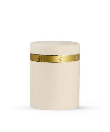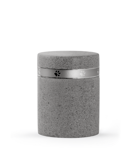 Die Urne ziert ein glänzendes Pfotenband.